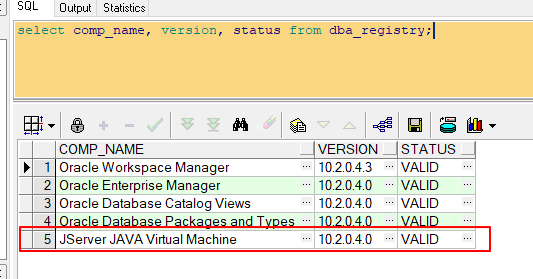 설치하신 후, 1의 쿼리로 'JServer JAVA Virtual Machine' 가 정상적으로 설치되었는지 확인하시기 바랍니다.